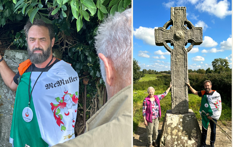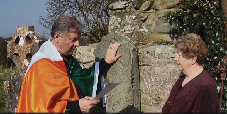 1. Lyn David McMullen (Taoiseach (2008-Dec 31st 2022) with Maureen McMullen (Cathaoirleach 2008) taking the oath on the "Stone of Lugh"; 2. Maureen and Lyn adjacent the 1500 year old termon cross dedicated to St Ciaran, patron saint of the Luighne and Gaileanga.; and 3. Michael James McMullen (Tanaiste) with Lyn.This was our inaugural clan event