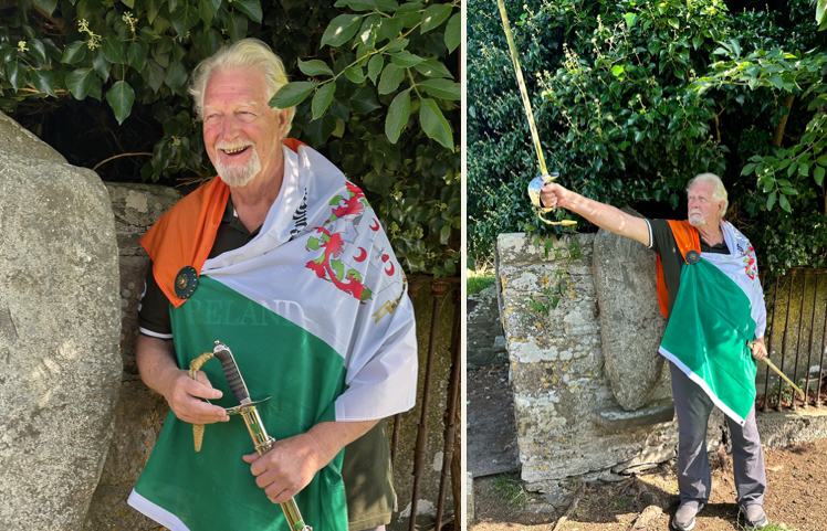 (pictured Lt Col Lyn David McMullen Clan Historian explaining the 'Stone of Lugh")